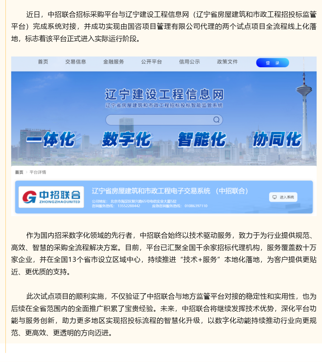 中招联合辽宁建设工程信息网试点项目圆满完成